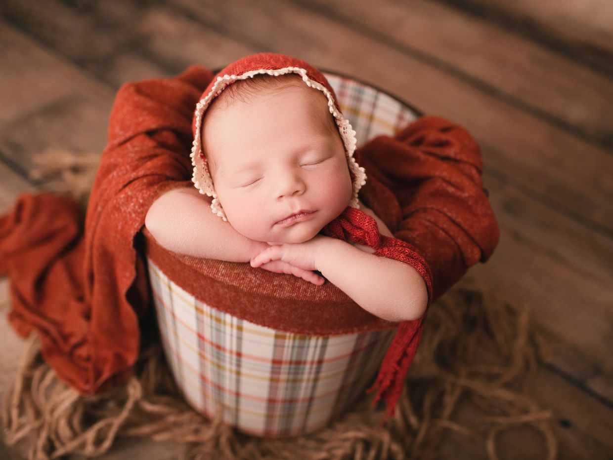 Newborn photoshoots are held at my home studio where fantastic lighting is guaranteed no matter the weather or time of day. In my studio I have lots of props, outfits, hats. headbands and more to complement all of baby's perfectness. The best time for newborn photos are 5-14 day old. This allows us to get those squishy curly poses that we all love. Also babies change so much after those first few weeks, newborn session are set up to capture all that newness!